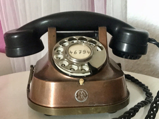 alt 50er beinahe antik FTR Bell Telefon Bakelit Kupfer sehr dekorativ schwer