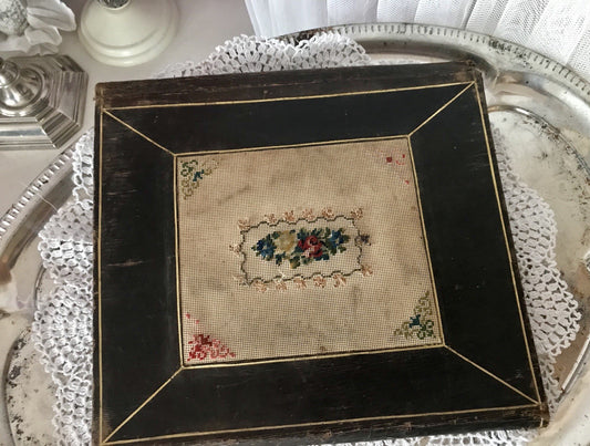Antik Briefmappe? Papiermappe Schreibmappe? Mappe Block Petitpoint Leder