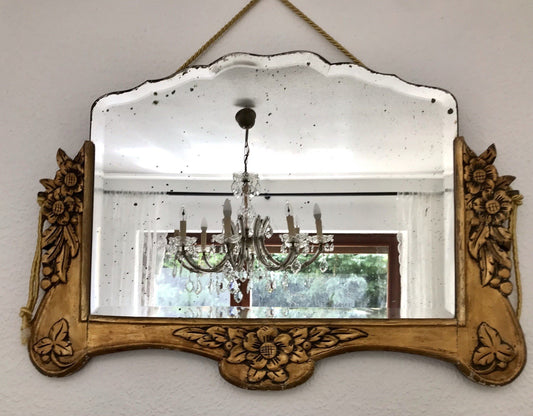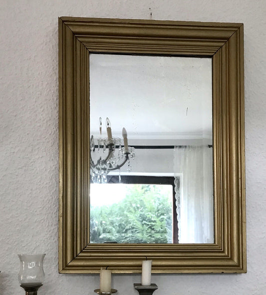 Antik Spiegel facettiert 1900-20 Jugendstil Art Déco Weichholz Wandspiegel gold