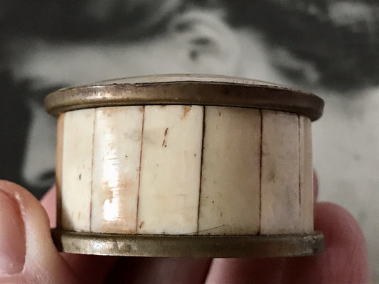 Antik? alt Döschen Pillendöschen Messing Horn Mosaik Intarsie