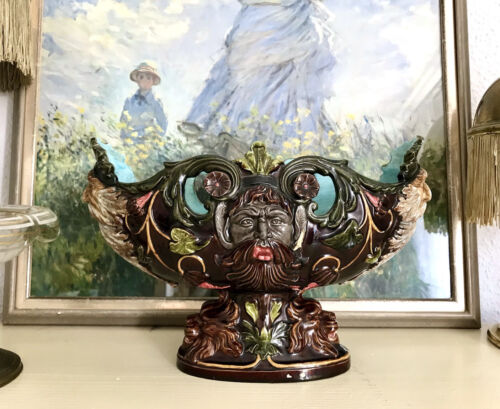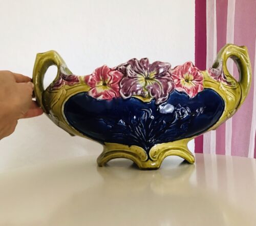 Antik Keramik Majolika Jardiniere Schale Tafelaufsatz um 1900 gemarkt