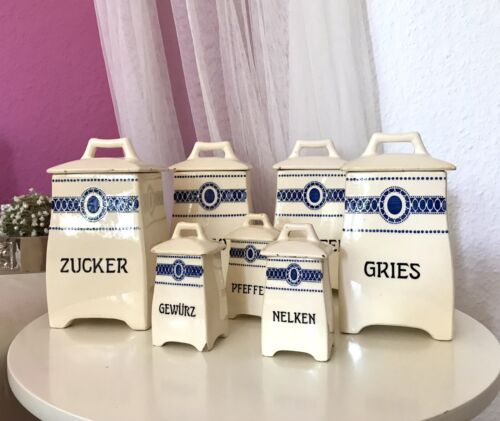 Antik 7 Jugendstil Keramik Vorratsgefäße Gries Kaffee Gefäße Vorratsdosen Asta