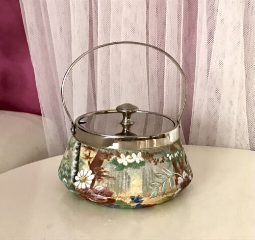 Antik Art Déco Bonboniere Glasdose Keksdose Konfektdose Dose Keramik? bemalt