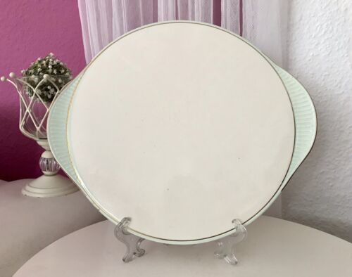 Antik Alt Vintage Grünstadt Tortenplatte Kuchenplatte Keramik Weiß Mint Goldrand