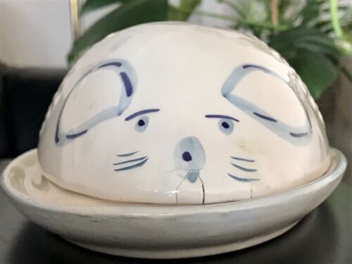 Alt Vintage Keramik Maus Butterdose Butterglocke Käseglocke SÜSS