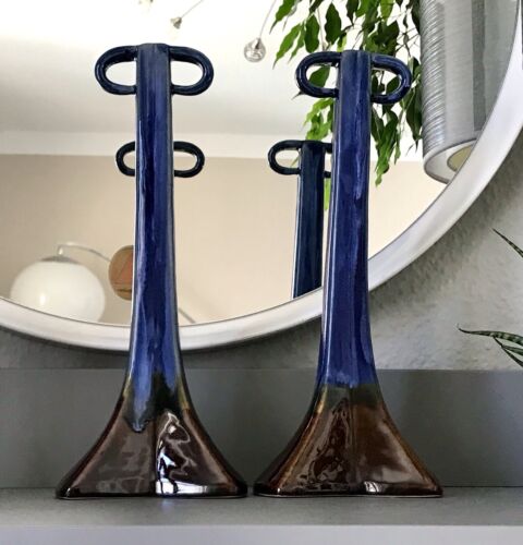 Antik Jugendstil 2 x Kerzenleuchter =Paar 31,5 cm! blau braun Keramik Rar!