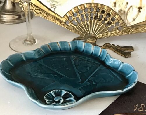 Antik Keramik Komponisten Porträts Schale Zierschale Visitenkarten blau gemarkt