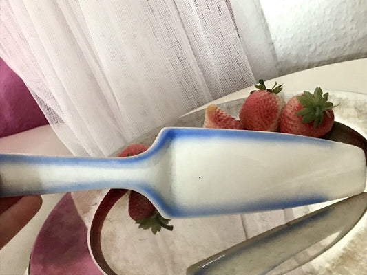 Antik Art Déco Tortenheber Tortenschaufel Keramik blau weiß gemarkt Spritzdekor