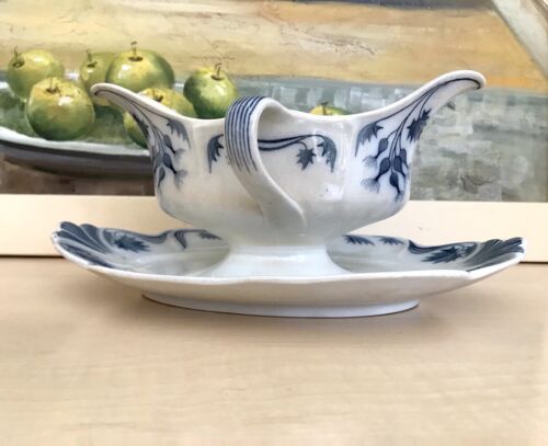 Antik Villeroy&Boch Mettlach Keramik Sauciere Soßenschüssel weiß blau Milla
