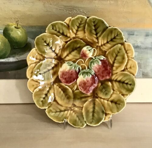 Antik Sarreguemines France Majolika Keramik Teller Zierschale Schale Erdbeeren