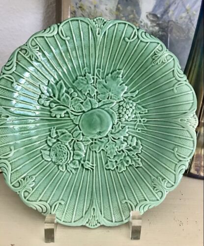 Antik Keramik Majolika Teller Zierteller Schale hell grün MP lI Schild gemarkt