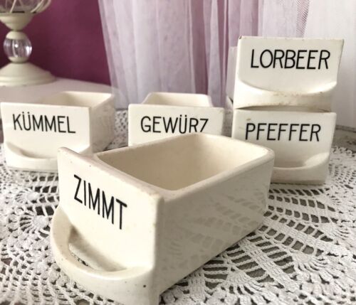 Antik Art Déco Schütte Vorratsgefäße Keramik Kümmel weiß schwarz