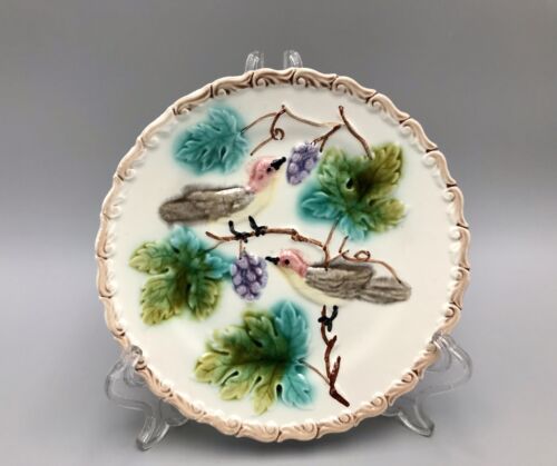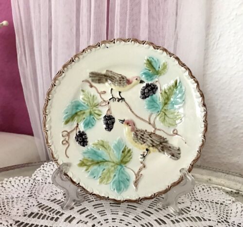 Antik Jugendstil Zell Keramik ? Majolika Schale Vögel Wein Visitenkartenschale