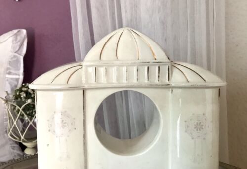 Antik Jugendstil Uhrengehäuse Keramik Cremeweiß Goldrand Rar
