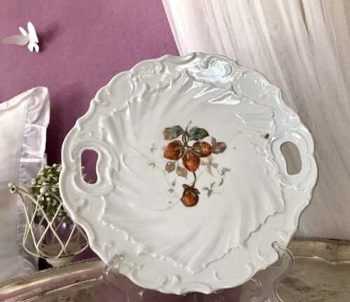 Antik Uralt Porzellan? Keramik? Schale Zierschale Erdbeeren um 1870