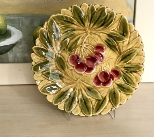 Antik Sarreguemines France Majolika Keramik Teller Zierschale Schale Kirschen