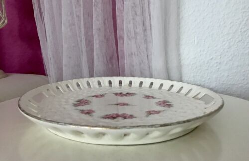 Antik Max Rösler Keramik Tablett? Platte Schale Durchbruch-Rand Rosen Art Déco