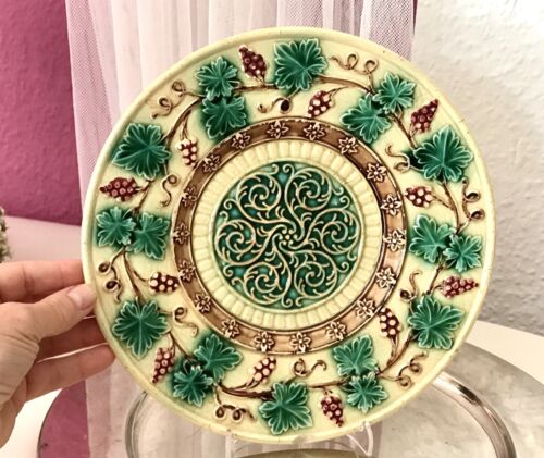 Antik Keramik Majolika Teller Zierteller Schale Weinranken Relief