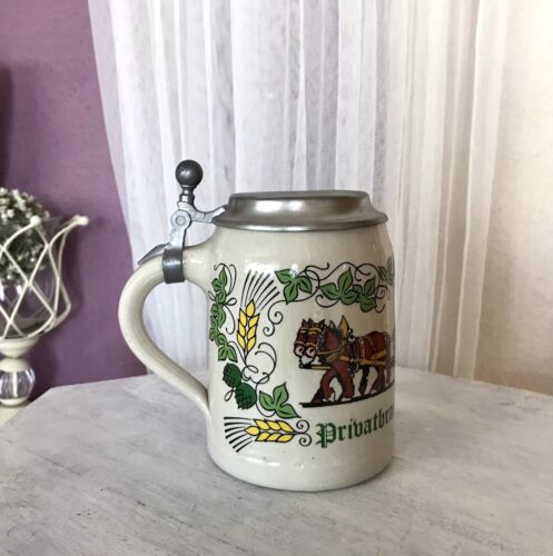 Krug Bierseidel Keramik Steingut Privatbrauerei Schärdel Hof Werbung Zinnmontur
