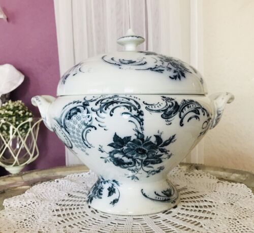 Villeroy&Boch Wallerfangen Jenny Jugendstil Keramik Suppen-Terrine weiß blau