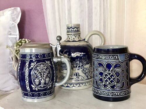 Krug Kanne Flasche Keramik Westerwälder Gerz Gerzit blau grau