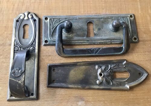 Antik Original 3 Beschläge Möbel Schilder Kommodengriffe Blenden Jugendstil