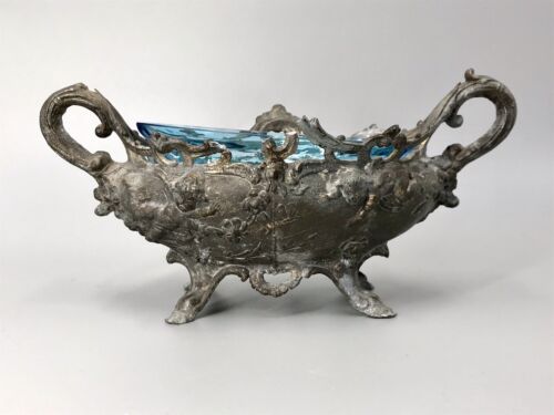 Antik Jardiniere Schale Tafelaufsatz Jugendstil Putti blauer Glaseinsatz gemarkt