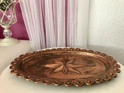 Antik große ovale Schale Zierschale gestreckter Stern Relief Hamnerschlag Kupfer