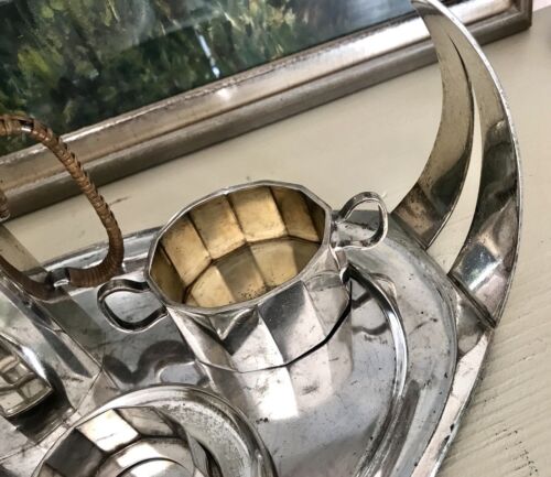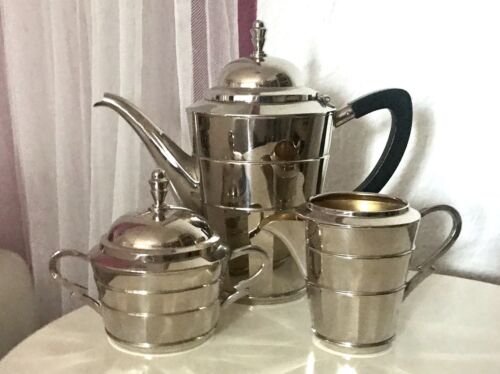 Antik markant Art Déco Kaffee Kernstück Zuckerdose Rahmgießer Kanne vernickelt?