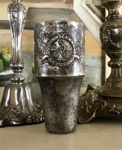 Antik Pokal Becher Cup Trophy Fahrrad Bicycle versilbert Art Nouveau Jugendstil