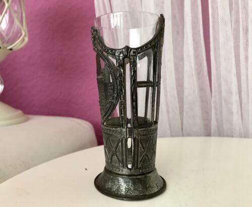 Antik Glasvase Metallmontur Jugendstil Nürnberg Glaseinsatz