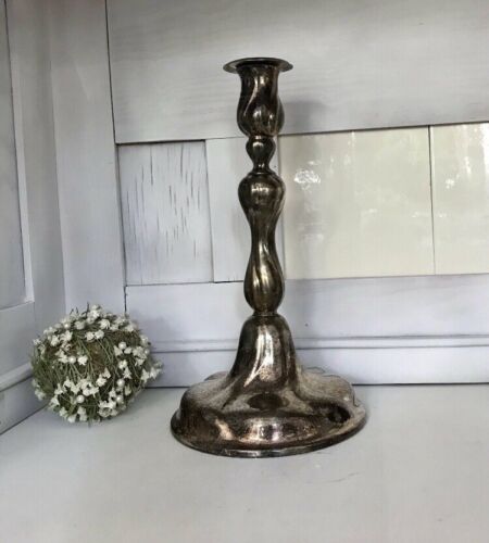 Antik Art Dèco versilbert 29 cm großer Kerzenständer Leuchter godroniert