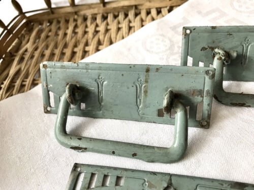 Antik Jugendstil Original 3 Kommodengriffe Möbel Beschläge Patina petrol blau