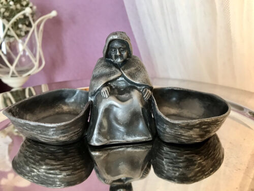 Antik Zinn Saliere Doppel-Salznapf Jugendstil Greisin mit Körben