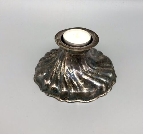 Antik Art Dèco versilbert f. Teelicht Stumpen Kerzenständer Leuchter godroniert