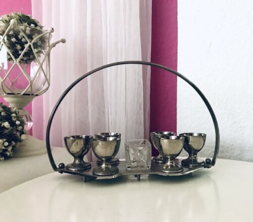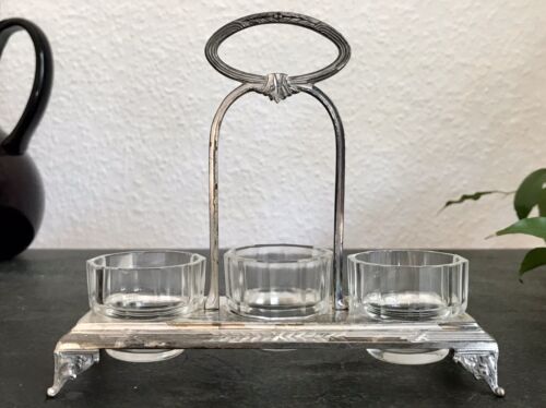 Antik Jugendstil Menage Eimenage Frühstück Metallmontur Glaseinsatz Pressglas