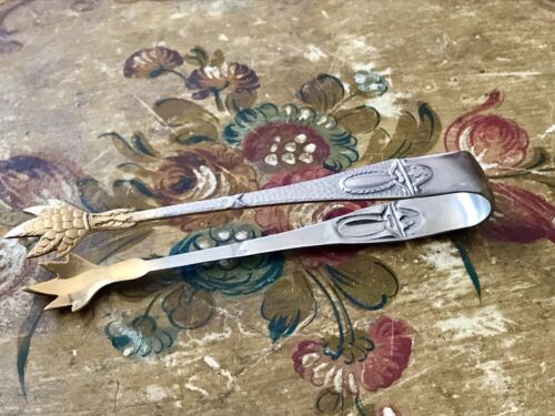 Antik klassizistisch Zuckerzange verchromt gold Krallengreifer sehr dekorativ