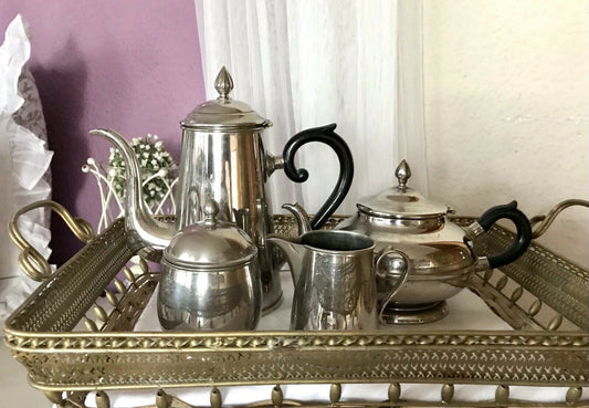 Antik Orivit Kaffee Kernstück Zuckerdose Rahmgießer Kanne Tablett 2 Halter 8Tlg.