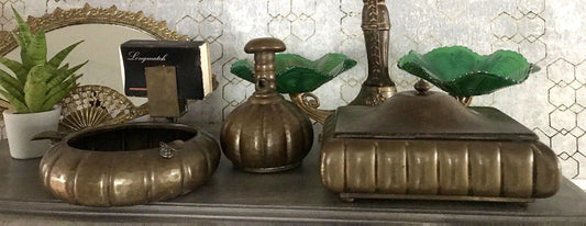 Antik Art Déco Raucherset Zigarren Dose Schneider Aschenbecher Messing