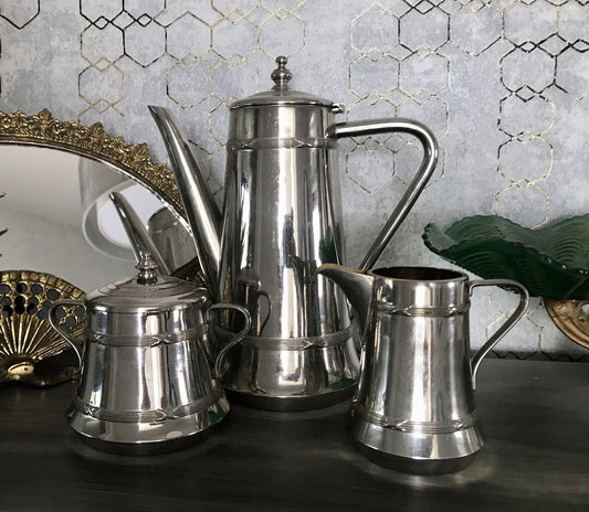 Antik Jugendstil Kaffee Kernstück Zuckerdose Rahmgießer Kanne vernickelt?