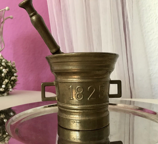 Alt Vintage Messing Mörser mit Pistill Stößel 1825 Replik