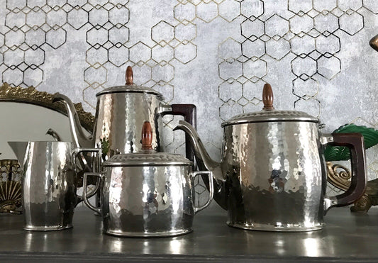 Antik WMF Jugendstil Kaffee Kernstück Zuckerdose Rahmgießer 2 Kanne Hammerschlag