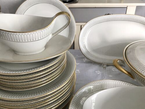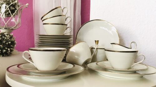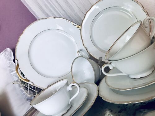 Edel Vintage Thomas / Rosenthal Porzellan Tafelservice 12Pers. weiß Goldrand