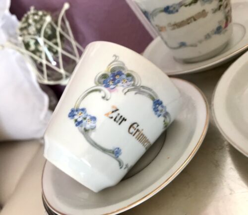 Jugendstil Porzellan Andenken 1 von 4 Kaffee-Gedeck Tasse Zur Erinnerung