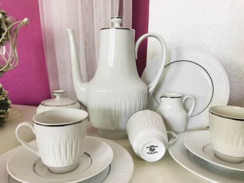 Edel Hutschenreuther Porzellan Kaffeeservice 12 Pers. weiß Platinrand 60er