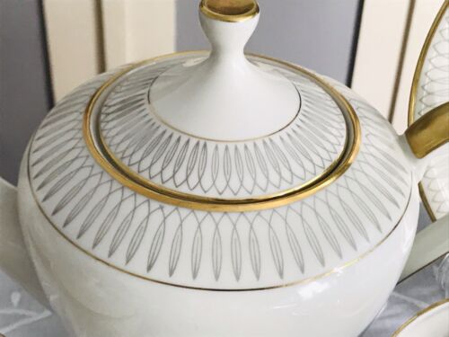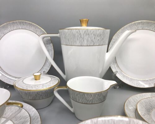 Porzellan 11/12 Pers. Kaffee-Service EDEL Goldrand Königl. pr. Tettau weiß grau