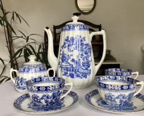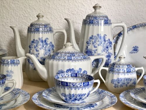 Edel Art Déco Porzellan Kaffeeservice Kronester China blau