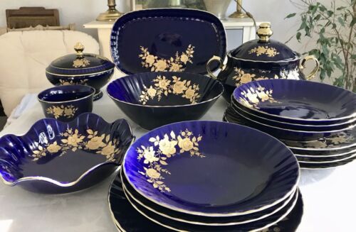 Edel Retsch Wunsiedel Porzellan Tafelservice 6Pers. echt Kobalt 24 Karat Gold