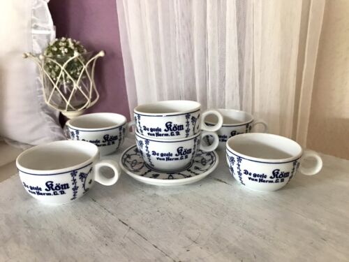 Porzellan 6 Tassen Espresso Mokka & 1 Untertasse indisch blau Der geele Köm