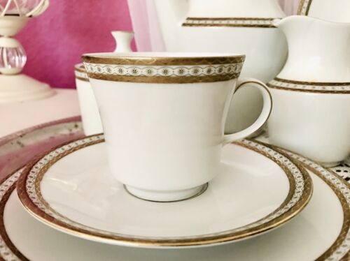 EDEL elegant Melitta Porzellan Kaffeeservice 11 Personen weiß Goldrand